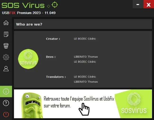 USBFix è sviluppato da SOSVirus specificamente per i bug che si diffondono tramite supporti USB, noti come virus di scorciatoia. Lo strumento blocca le infezioni che possono diffondersi da un computer all'altro, ripristina le funzionalità danneggiate di sicurezza, registro e task manager, nasconde i file e così via. Inoltre, viene costantemente aggiornato e informa su eventuali nuove minacce. Offre un servizio di assistenza tecnica online con esperti competenti per rispondere a tutte le vostre domande.